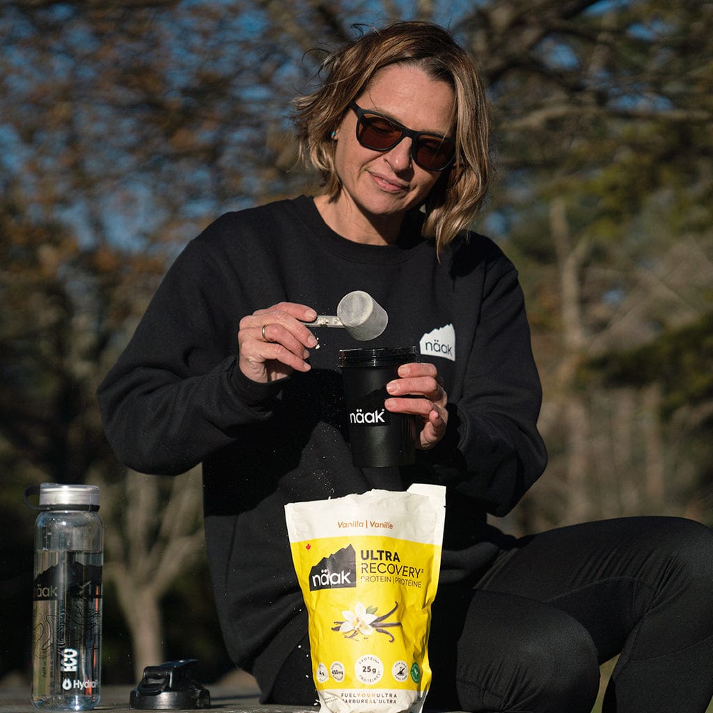 Je dirais que mes produits Näak préférés sont : les barres caramel macchiato, la purée pomme et sirop d'érable et les gaufres au chocolat. Après les entraînements et le repos, la nutrition est le pilier le plus important de ma performance.