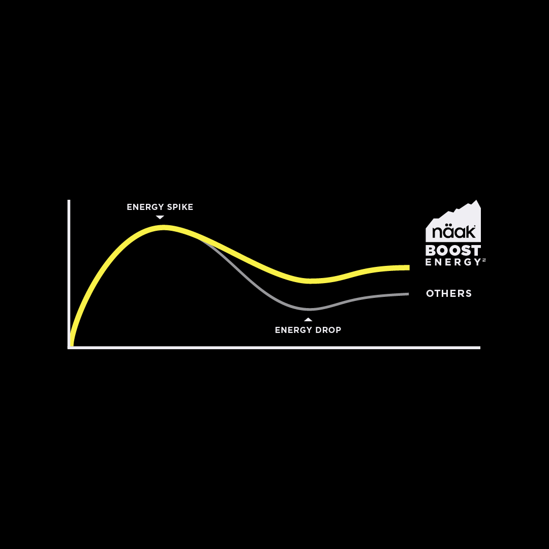 Näak Boost Energy™ Drink Mix est formulé avec un mélange équilibré d'hydrates de carbone pour optimiser la fourniture d'énergie. La maltodextrine (issue de l'amidon de tapioca), un hydrate de carbone complexe, se décompose en glucose, assurant une libération d'énergie prolongée. Le palatinose™ (isomaltulose), un sucre à digestion lente dont la structure est similaire à celle du saccharose, fournit une énergie régulière sans provoquer de pics ou d'effondrements de la glycémie. Ce mélange contient 2/3 de sucres simples, 1/3 de sucres complexes et un rapport glucose/fructose de 2:1, assurant un apport énergétique optimal.