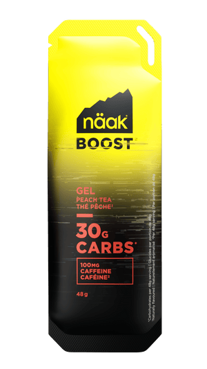 Pour maintenir une performance de pointe, Näak recommande un objectif de 60 g à 90 g de glucides et de 200 mg à 600 mg de sodium par heure. Combiner les gels Boost™ et la boisson d'effort Boost™ est la méthode la plus efficace pour atteindre ces cibles sans surcharger votre estomac.